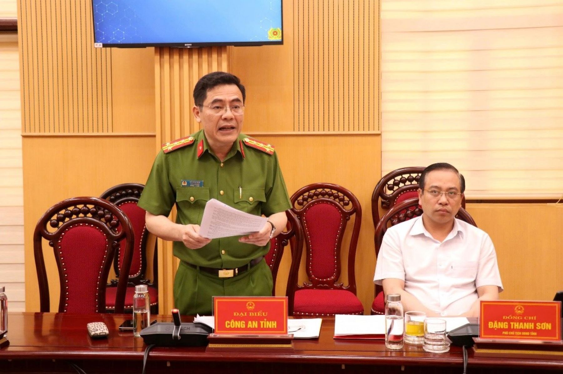 Đại diện lãnh đạo Công an tỉnh báo cáo kết quả công tác triển khai Đề án 06; cải cách thủ tục hành chính, chuyển đổi số gắn với Đề án 06 trên địa bàn tỉnh