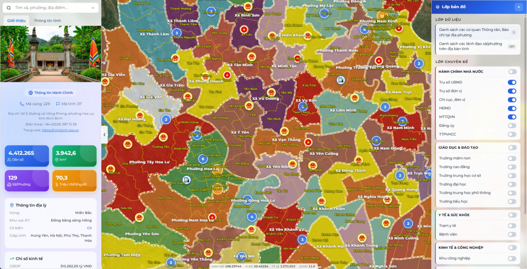 Giao diện bản đồ số hành chính tỉnh Ninh Bình